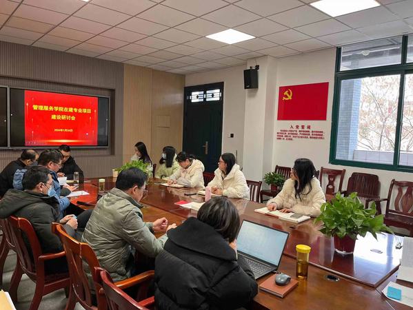 新年伊始,管理服务学院全体师生以饱满的热情投入到文旅康养专业群建设的各项工作中去,元月24日下午在314会议室召开在建集体项目建设研讨会,管理服务学院院长陈颖及三个在建的集体项目以及“区域经济研究所”科创平台项目成员参加了研讨会,研讨会由副院长李敏主持。