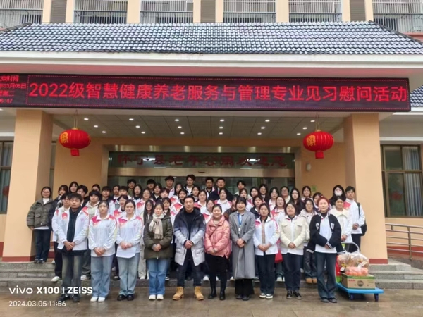 3月5日,2022级智慧健康养老服务与管理专业同学赴安庆怀宁福见康养养老院开展了为期一天的岗位见习活动。智慧健康养老团队教师朱菲菲、梁妞作为校内导师进行活动组织与指导,福见康养的蒋院长及院内两为优秀社工担任校外见习导师。