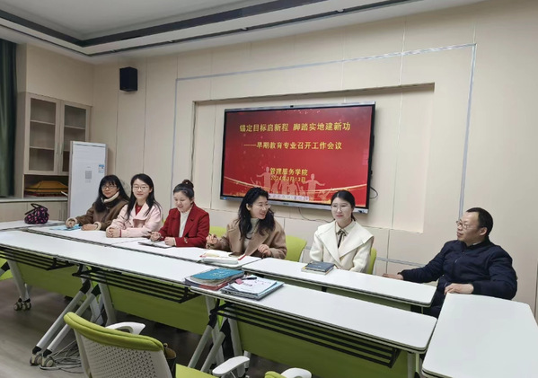 2024年3月13日管理服务学院早期教育专业在3号教学楼文旅大师工作室,召开主题为“瞄定目标启新程,脚踏实地建新功”的新学期全体教研会议,管理服务学院副院长李敏及早期教育团队教师参加了会议。