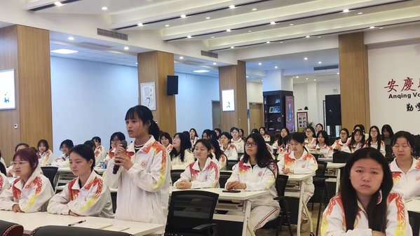 张晨老师的先进事迹深深打动了现场的观众,宣讲结束后,大家踊跃发言互动,大家纷纷表示,要学习张晨老师身残志坚、自强不息的精神,用榜样的力量激发自己,绽放青春风采。婴幼儿托育服务与管理专业负责人冯鲁红老师与张晨老师交流了如何给特殊的孩子制定个性化学习方案和如何排解特殊孩子的情绪的问题,张晨老师进行了耐心地解答。22婴幼儿托育服务与管理专业的赵琪同学表示希望通过志愿服务活动帮助更多的心智障碍者,像张晨老师一样成为照亮孩子心中的那道光;23级早期教育班专业的王小雅同学,表示自己以后要像张老师一样做一个传递正能量的老师,对孩子有耐心、有爱心,用萤火微光照亮孩子心灵。23级酒店管理2班王静同学在接受安徽电视台采访时表示,张晨老师那种不向命运低头、不断突破自我、破茧成蝶的成长历程为年轻人树立了榜样。作为当代团员青年要学习张晨老师勇于挑战自我,追逐梦想,为教育事业贡献青春力量的精神,在时代的洪流中实现人生价值。