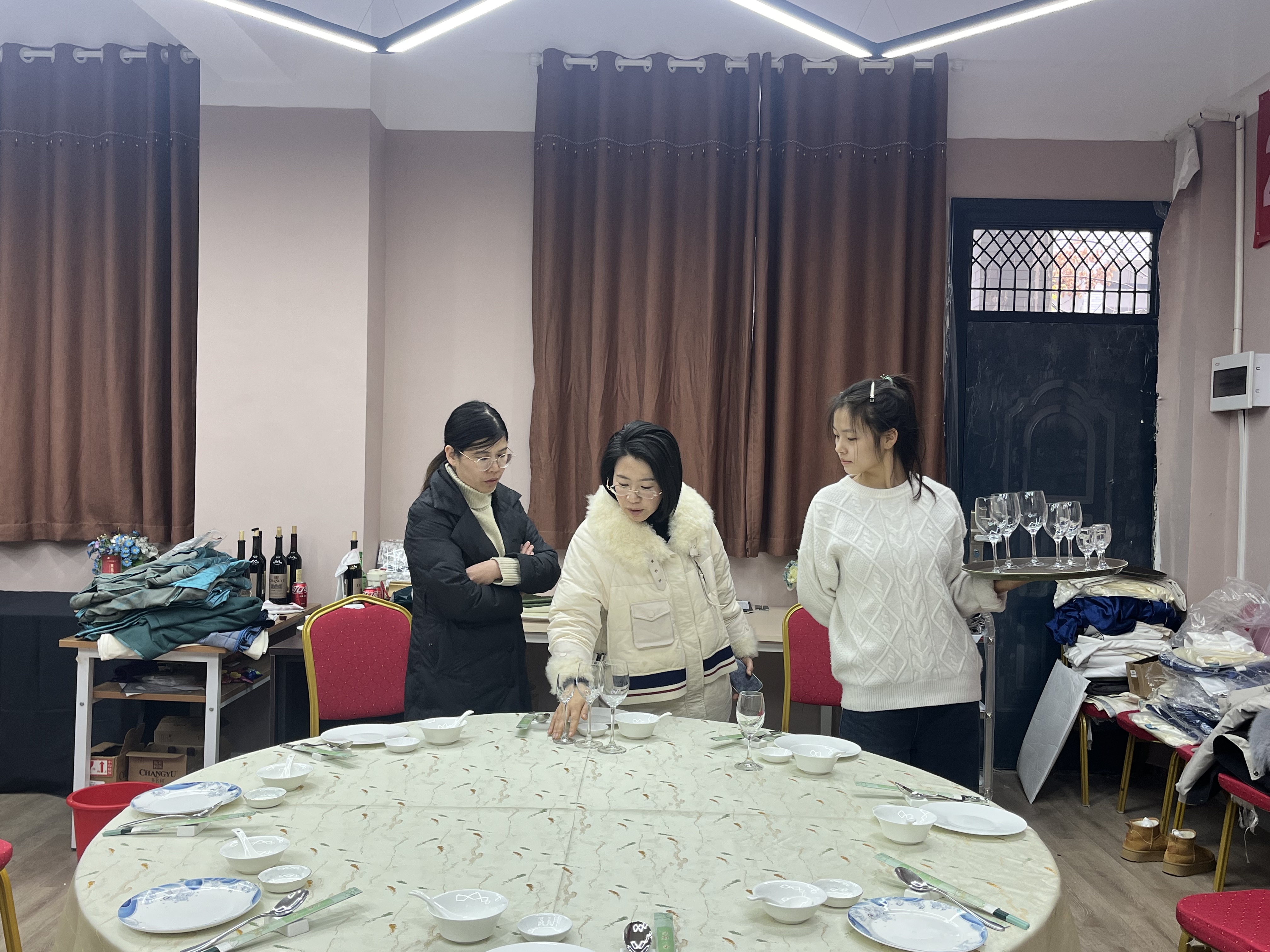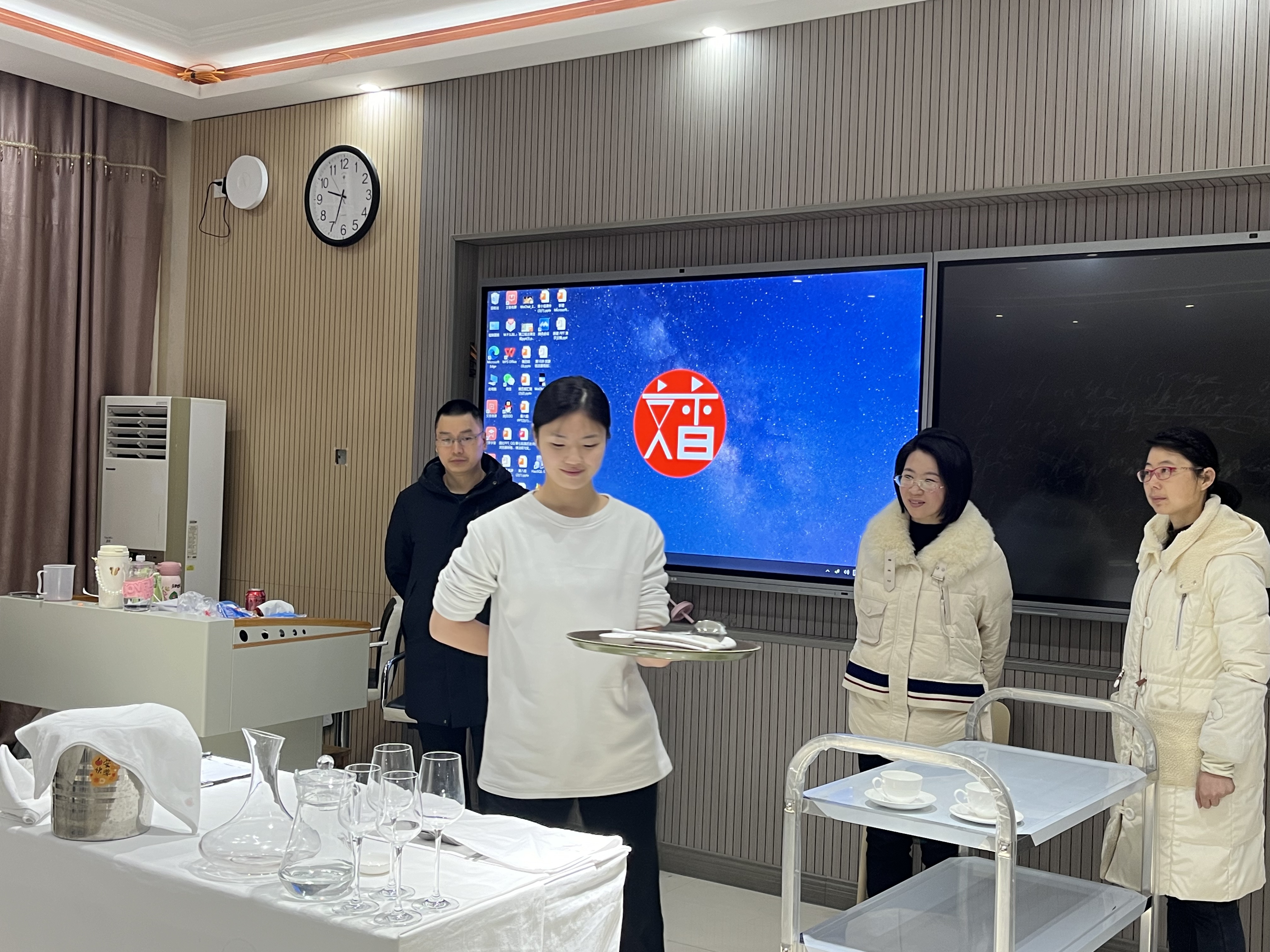 12月26日上午,管理服务学院院长陈颖、党总支副书记丁凡、副院长李敏及教学管理科相关人员深入酒店服务、导游服务、社区服务实务、中华茶艺、研学旅行等学生技能大赛相关赛项的备赛现场,了解备赛进度,观摩实战演练,与指导老师及备赛选手广泛交谈,为选手加油打气。备赛同学热情高涨,训练刻苦,纷纷表示在指导老师的悉心指导下,不断钻研技能,努力提升自己的竞技水平,争取相关赛项成绩的新突破。