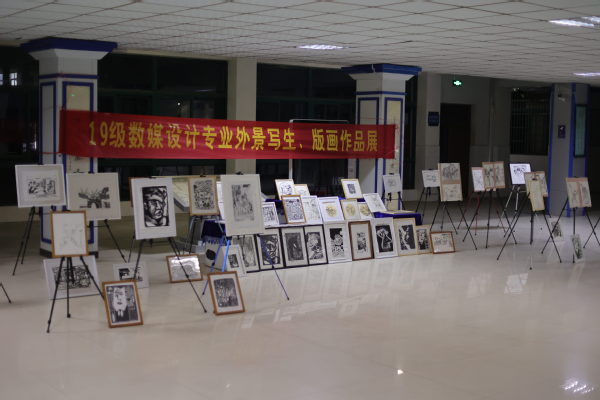 为活跃校园文化艺术氛围,展现专业风采,12月8日—12月15日,信息技术学院在二号教学楼东大厅举办了2019级数字媒体艺术设计专业外景写生、版画作品展。