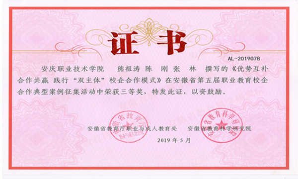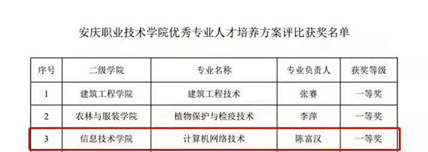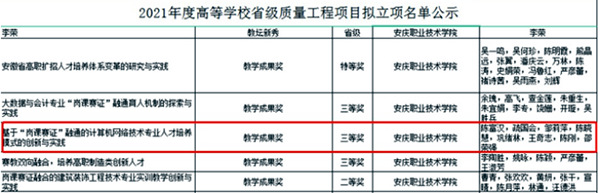 合作4年来,校企联合开发基于工作过程项目化教材9种,并正式出版发行,推进了校企合作专业教学内容创新;双方共同申报的“优势互补合作共赢践行‘双主体’校企合作模式”在安徽省第五届校企合作典型案例征集活动中荣获三等奖;通过校企联合委派指导教师辅导学生参加各类职业技能大赛,荣获安徽省职业技能大赛一等奖2项,二等奖3项,三等奖8项的好成绩;为进一步深化学生德育教育,2019年校企双方党组织共建“思政实践教育基地”在学生的素质教育方面获得多方认可;在2021年度3200威尼斯vip优秀人才培养方案评选中,校企共建计算机网络技术专业人才培养方案获得一等奖;双方共同研究的“基于‘岗课赛证’融通的计算机网络技术专业人才模式的创新与实践”荣获安徽省教学成果奖三等奖。一项项奖牌,一项项荣誉,一项项成果充分体现了校企合作成果,推进了职业教育创新发展步伐。(文、图:陈刚 审核:疏国会)