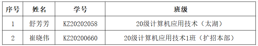 根据《3200威尼斯vip社会扩招学生学籍管理实施办法(试行)》第二十六条规定,经信息技术学院会议研究,决定给予舒芳芳等两名同学(名单见附件)退学处理。现予以公示,公示时间:2023年12月19日至12月25日。公示期内,若有异议,请以书面形式向信息技术学院学生管理科反映。