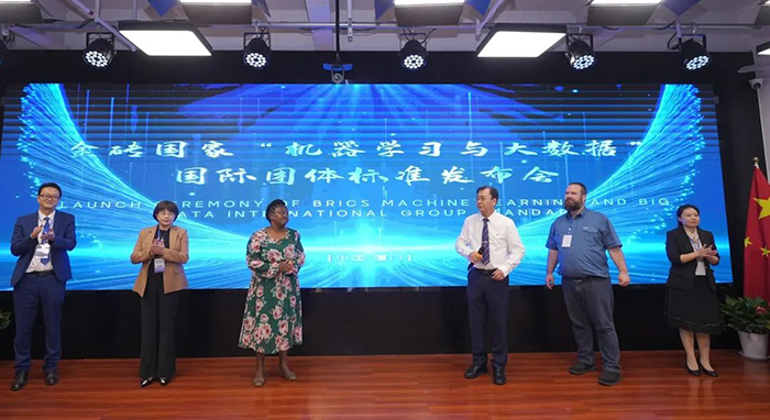 近日,金砖国家“机器学习与大数据”国际团体标准发布会在厦门市金砖未来技能发展与技术创新研究院举行。金砖国家工商理事会(中方)技能发展工作组、一带一路暨金砖国家技能发展国际联盟、厦门市金砖技术与技能标准化技术委员会、厦门市金砖未来技能发展与技术创新研究院、厦门市人力资源和社会保障局职称管理与专家服务处领导,金砖国家工商理事会(南非)技能发展工作组主席、南非高等教育与培训部教育培训署董事Ms.Mapule Ncanywa出席会议并致辞。金砖国家工商理事会(南非)技能发展工作组业务总监Tumediso Lobelo、数字战略顾问Zipporah Maubane、项目经理Bonolo Sedupane,以及参与标准编制的160余名专家参加了发布会。威尼斯官网信息技术学院院长疏国会教授作为副主任委员应邀参会。