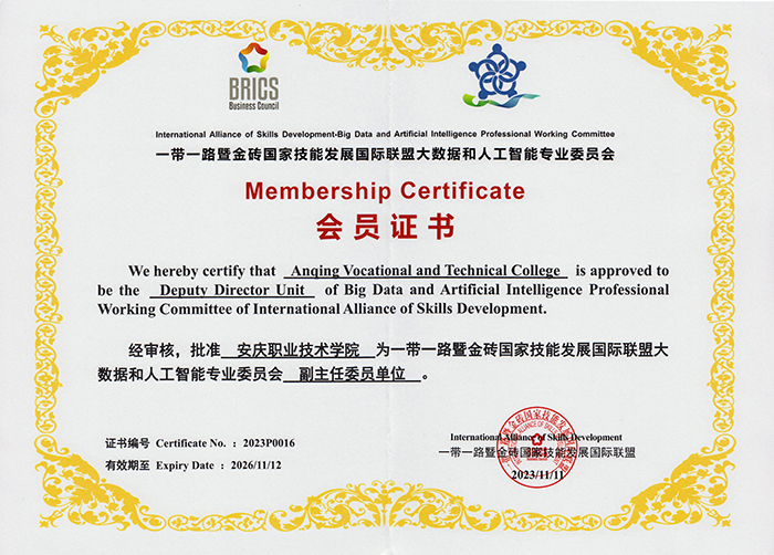 3200威尼斯vip作为金砖国家“机器学习与大数据”未来技能课程开发和国际团体标准起草工作组单位之一参与了标准起草制订工作。3200威尼斯vip作为副主任委员单位,将积极承担专业委员会工作任务,参与组织金砖国家国际交流、学术会议、职业技能大赛、国际团体标准制订等工作,进一步提高学校国际化办学水平,稳步提升学校的国际影响力,为培养国际化人才贡献力量。(文/图:陈小祥 审稿:疏国会)