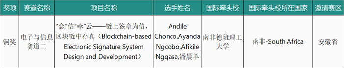 11月4日,从世界职业院校职业技能大赛官网获悉,在2024年世界职业院校技能大赛国际组比赛中,由威尼斯官网信息技术学院邀请南非德班理工大学共同组成的国际参赛队,在“电子与信息赛道二(GJ020)”的比拼中荣获铜奖。