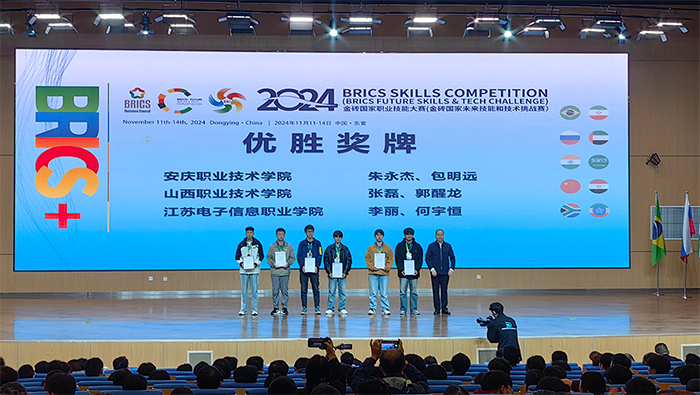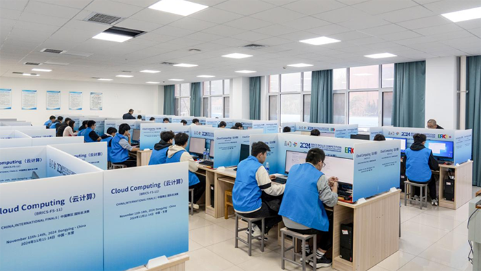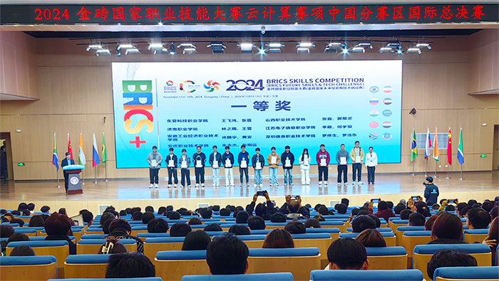 11月11日至14日,2024金砖国家职业技能大赛云计算赛项中国分赛区国际总决赛在山东东营科技职业学院成功举办。此次大赛汇聚了来自中国30个省市的66支线下参赛队伍,以及印度、加纳、巴西等国家的40支线上参赛队伍,共同角逐这一国际赛事的荣誉。经过激烈的比拼,威尼斯官网信息技术学院教师陈富汉、陈秀云指导的由计算机网络技术专业学生朱永杰、包明远组成的代表队,在比赛中展现出卓越的实力和沉稳的心态。他们凭借出色的发挥,最终以总分第四名的优异成绩,成功摘得国际总决赛一等奖,指导教师陈富汉、陈秀云也荣获了优秀指导老师的称号。