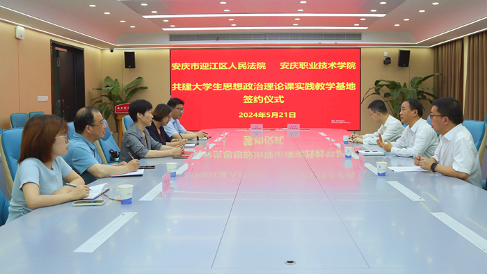 为加强青年学生思想政治教育,提升学生法治素养,培养具有社会责任感和法治精神的新时代人才,5月21日威尼斯官网与迎江区人民法院举行共建大学生思想政治理论课实践教学基地签约仪式。校党委委员、宣传部部长吴何珍,迎江区人民法院党组书记、院长章伏虎出席签约仪式。迎江区人民法院相关负责人、马克思主义学院相关同志参加。
