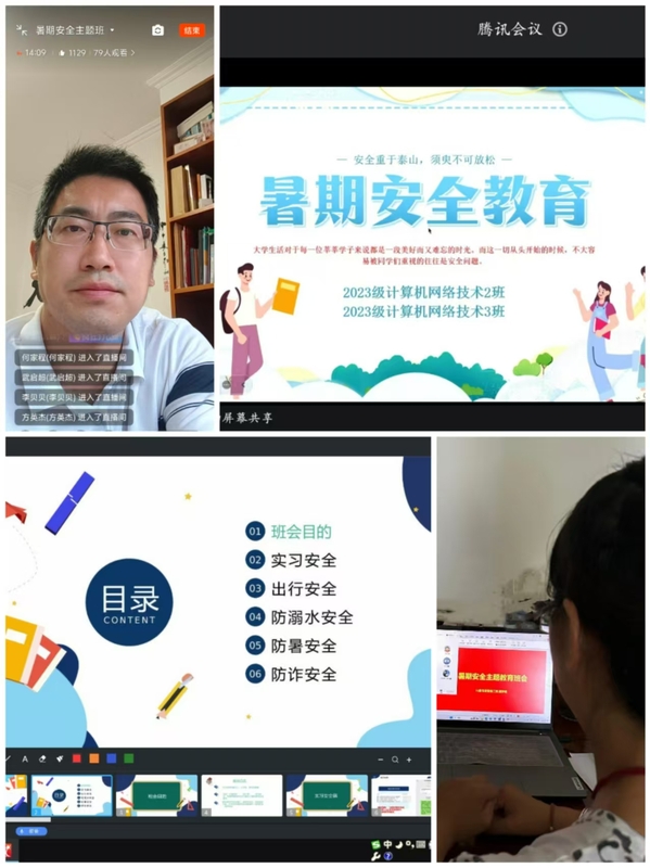 8月初,威尼斯官网在暑假期间组织开展安全教育线上主题班会活动。本次主题班会活动覆盖全校2022级、2023级共计9000余名学生。活动中,辅导员依托腾讯会议、钉钉、超星教管系统等网络平台,围绕防溺水教育、防诈骗安全教育、交通安全教育、实习安全教育、网络安全教育、食品安全教育、心理健康教育和用水用电以及防火安全教育等有关学生人身和财产安全等多个主题,精心准备了内容丰富、形式多样的线上“云”班会,通过“云直播”的形式,积极开展暑期安全教育宣传。通过活动,有效地提升学生和家长的安全意识,确保假期安全教育取得实效。