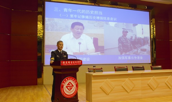 10月16日下午,我院特邀请迎江区人武部政委潘发良作国防教育专题讲座,来自各系600余名学生聆听了讲座。