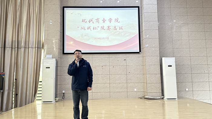 为培养学生创新创业能力、实践能力和团队合作能力,提升学生综合素质,3月27日下午现代商务学院在三号教学楼316阶梯教室举办第十一届“挑战杯”大学生创业计划竞赛院赛。此次比赛邀请四位经验丰富的老师担任评委。参与本次比赛共有八支队伍,三十余名学生选手。学院党总支副书记李三平出席并致辞。