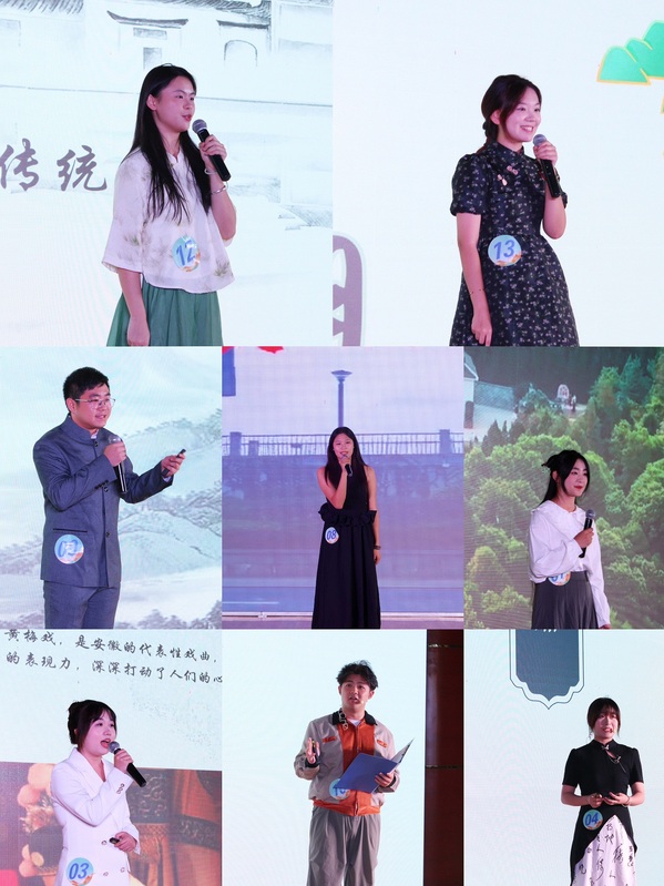 赛前,经各二级学院团总支、社团推荐,12位选手脱颖而出。选拔赛现场气氛热烈,选手们依次登场,个个精神饱满、激情洋溢。在主题宣讲环节中,他们用生动的语言、真挚的情感,从不同角度描绘了安徽的美丽风光、灿烂文化和蓬勃发展。有的聚焦安徽的壮丽山水,讲述黄山的奇松、怪石、云海等,仿佛将观众带入了那如诗如画的自然风光之中;有的介绍安徽的传统美食,如徽州臭鳜鱼、黄山烧饼等,令人垂涎欲滴;有的通过生动的讲述,将黄梅戏的历史渊源、艺术特色以及其独特魅力展现的淋漓尽致;有的则分享了安徽的科技创新成果,展现安徽在时代的浪潮中勇立潮头。在才艺展示环节中,选手们的才艺丰富多彩,令人目不暇接。有的以深情的朗诵,歌颂安徽的壮丽山河和悠久历史;有的带来了精彩的歌舞表演,让观众们沉浸其中,不能自拔;有的表演脱口秀,以幽默风趣的语言,调侃着生活的点滴,为现场增添了轻松愉快的氛围;有的表演茶艺,她的动作优雅,神态从容,用精湛的茶艺展示着安徽的茶文化;有的则带来相声表演,成为比赛现场的一大亮点,开场的几句俏皮话,如同跳跃的火苗,瞬间点燃了现场的气氛,引发观众的阵阵欢笑。经过激烈角逐,张磊同学在一众选手中脱颖而出,获得一等奖;朱王康同学与常露文同学分别获得二等奖;肖徽、汪佳梦、周兴悦三位同学获得三等奖。