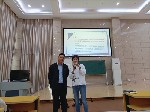 报告会结束后,学生工作负责人与汪俊同学进行了互动。如:作为创业者,你觉得当年学习的专业知识有用吗?作为企业管理者,你会看重学生的某些能力?作为一名学长,你有哪些经验或者心理话要和同学们交流?汪俊学长肯定了学校对自己的培养和专业的学习对自己创业的帮助,鼓励学弟学妹在专业的路上有所坚持,不轻言放弃。并表示会一直关注学弟学妹的成长,欢迎学弟学妹去天顺农业科技有限公司实习就业。