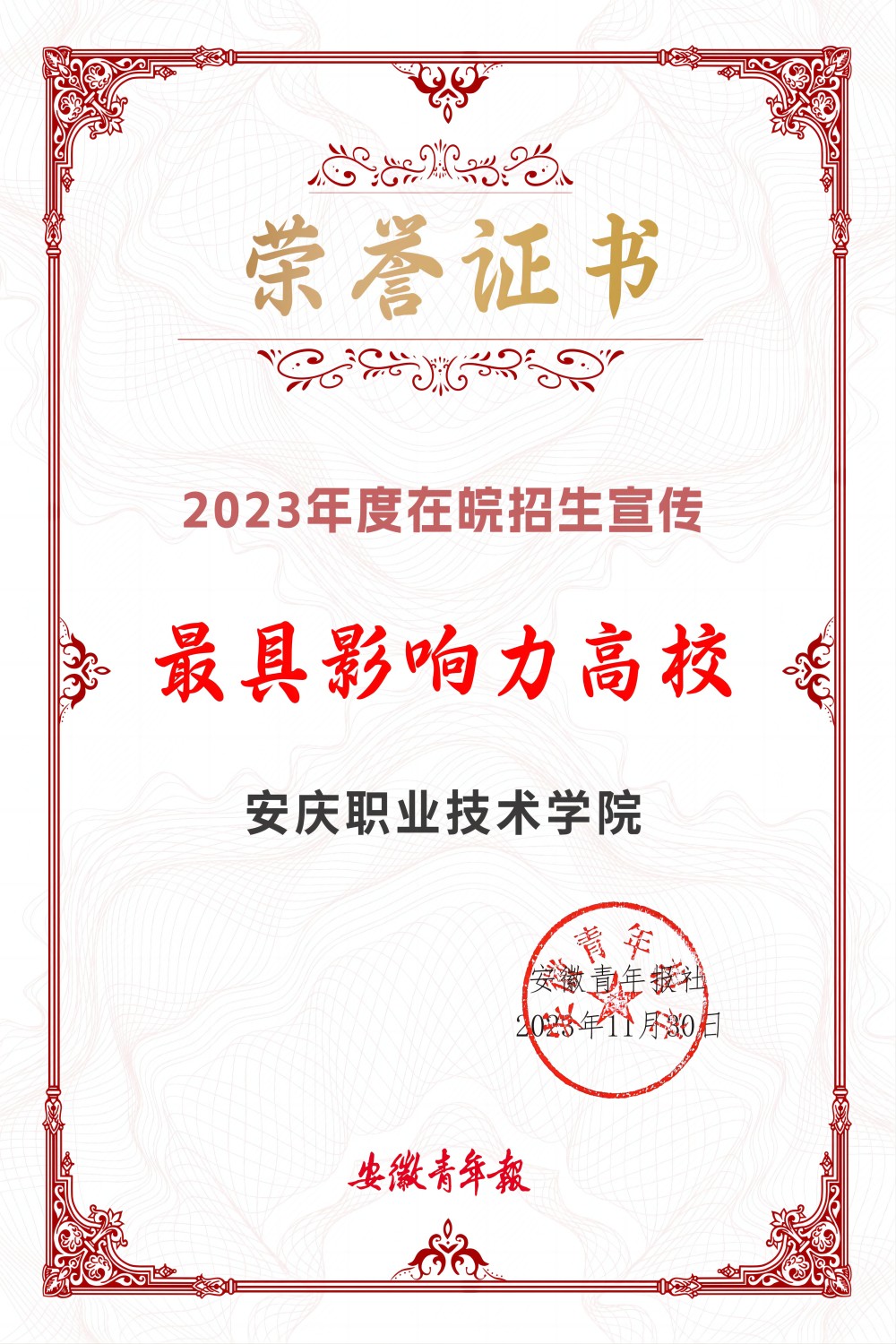 省级之最!威尼斯官网获评2023年度在皖招生宣传“最具影响力高校”