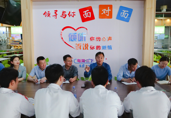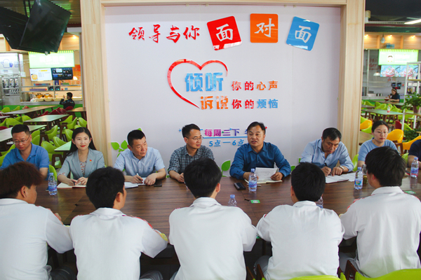 参观结束后,师生们围坐在食堂大厅开展面对面座谈,大家轻松交流,畅所欲言。“这次参观后厨活动真有意思,让我们了解了学校食堂的运作流程,对于学校的食品安全和食材质量有了更深刻的认识。我们亲身体验到了食品安全和健康饮食的重要性,也让学校食堂的品牌形象在我们心中有了深深的位置,”管理服务学院陈庆舒同学开心地说。“希望食堂可以增加一些特色菜系,让不同地方的同学都能吃上自己的家乡菜。现在天气渐热了,我觉得食堂还可以增加一些品种多样的凉菜、下午茶和夜宵小吃之类,跟上时代和季节的潮流,吃出威尼斯官网食堂新风尚!”信息技术学院陈桥兵同学认真地说。